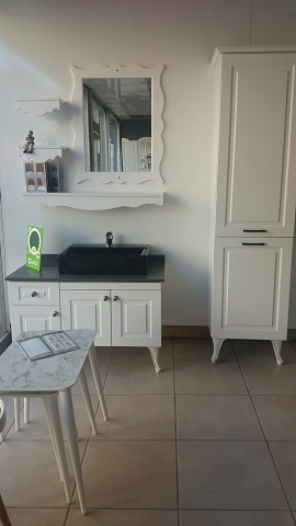 Siyah El Yıkama yeri ve alt üst aynalı dolap yan kullanışlı ayaklı dolap.