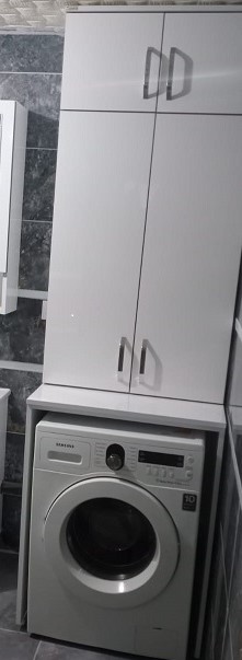 4 kapak beyaz makine üstü banyo dolabı.