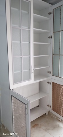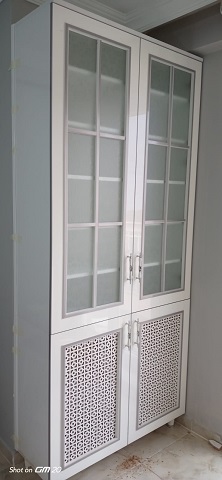 Çok amaçlı beyaz desenli camlı Dolap